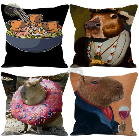 Capybara Club Pillow Case Peach Skin Humor Funny Suits Pattern Gifts Comfortable Soft Sofa Cushions Cover Party Wedding Decor