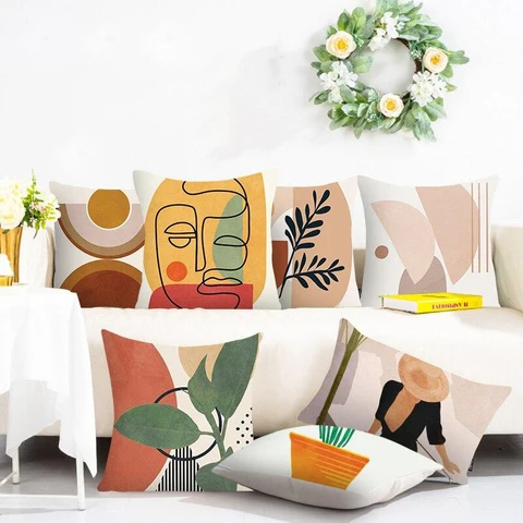 45X45CM New Style Black And White Geometric Portrait Pillowcase Home Sofa Office Cushion Pillow Cushion Cover Wholesale