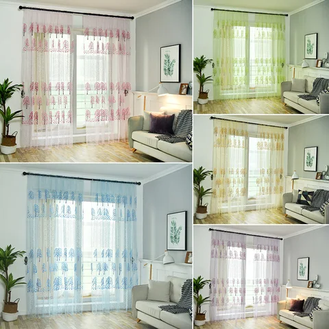 Tree Leaves White Sheer Curtains for Living Room Transparent Tulle Window Treatments Bedroom Kitchen Home Decor Veil Drapes