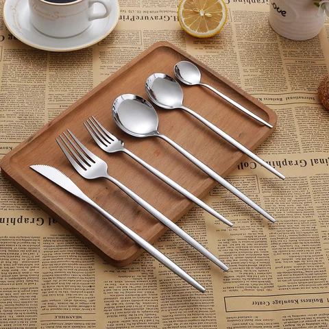 Spoon Fork Cutlery Steak Knife Stainless Steel Dessert Tableware Dessert Soup Stirring Spoons Forks Dinnerware Kitchen Accessory