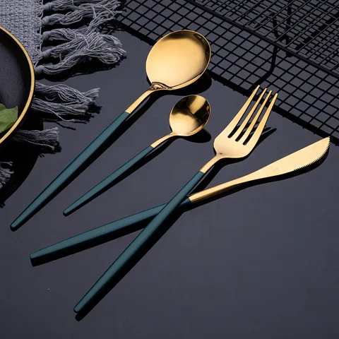 Western Cutlery Set Steak Knife Fork and Spoon Set Flat Stainless Steel Set Kitchen Western Tableware Set High Quality Tableware