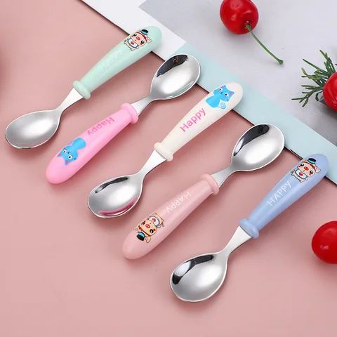 Baby Gadgets Tableware Set Children Utensil Stainless Steel Toddler Dinnerware Cutlery Cartoon Infant Food Feeding Spoon Fork