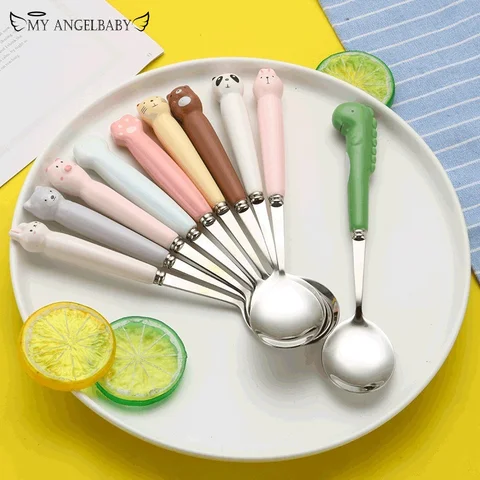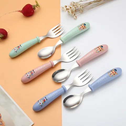 Tableware Cartoon Kids Spoon Fork Set Dessert Spoon for Children Fork Baby Gadgets Feed Kid Children's Cutlery for Kids Boxless
