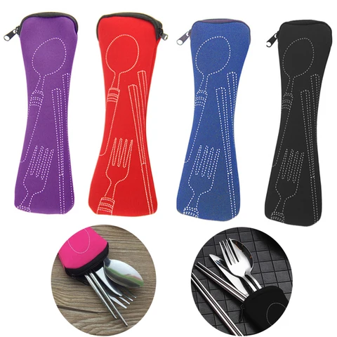Portable Tableware Bag Cutlery Storage Bag Travel Packaging Storage Box Picnic Fork Spoon Knife Pouch Bag (Without Tableware)