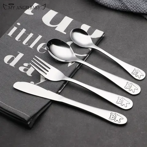 Baby Teaspoon Spoon Food Feeding Fork Knife Utensils Set Stainless Steel Kids Learning Eating Habit Children Tableware