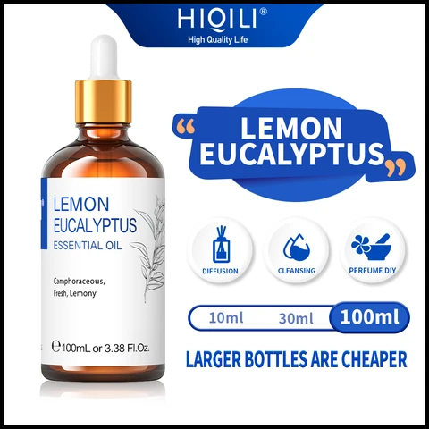HIQILI 100ML Lemon Eucalyptus Essential Oils, 100% Pure Nature Oil for Antibacterial, Insect repellent and helping breathe