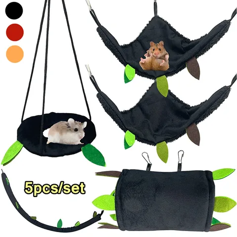 5PCS Hamster Hammock Small Animals Hideout Hanging Warm Bed House Rat Cage Nest Swing Tunnel for Sugar Glider Squirrel Sleeping