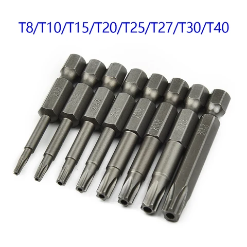 8pcs/set 50mm 5 Point Torx Drive Bit Set 1/4" 6.35mm Hex Shank Electric Screwdriver Bit Kit Power Tools With Center Hole