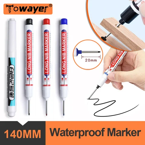 20mm Long Head Marking Pen Waterproof and Colorfast Ceramic Tile Wood Metal Deep Hole Marking Pen Woodworking Electrician Tools