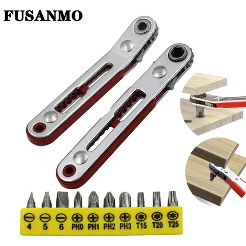 Mini Ratchet Wrench Screwdriver 1/4 Bit Angled Adapter Drive Socket Hex Bit Dual-Drive Head Ratchet Wrench Adjustable with Bit