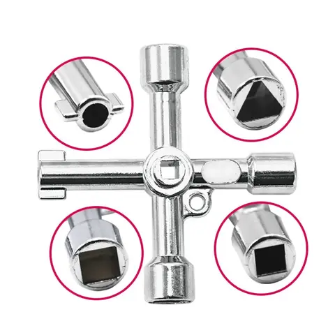 4 Way Universal Cross Triangle Wrench KEY for Train Electrical Elevator Cabinet Valve Alloy Triangle