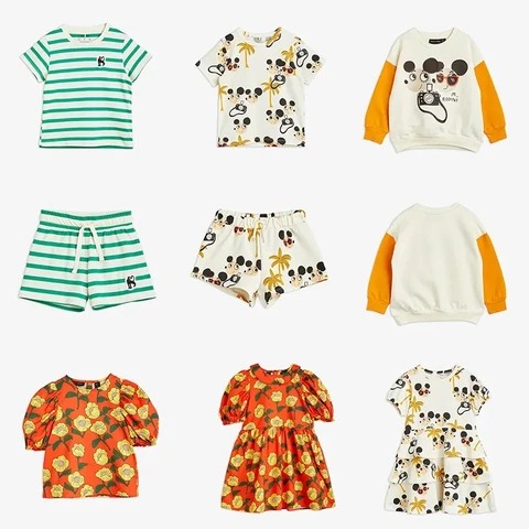 2023 New Summer Boy Girl Stripe T-shirt Girl Student Stripe Dress Kid Shorts Lovely Children's Suit Mini Rodini Set Collection