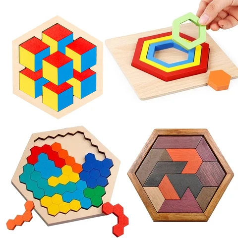Montessori Wooden Toys 3D Jigsaw Puzzle Tangram Math Toys Baby Hand Grasp Board Shape Match Puzzle Educational Toys for Kids