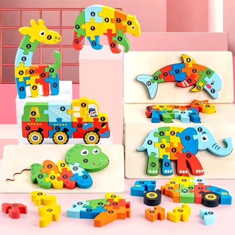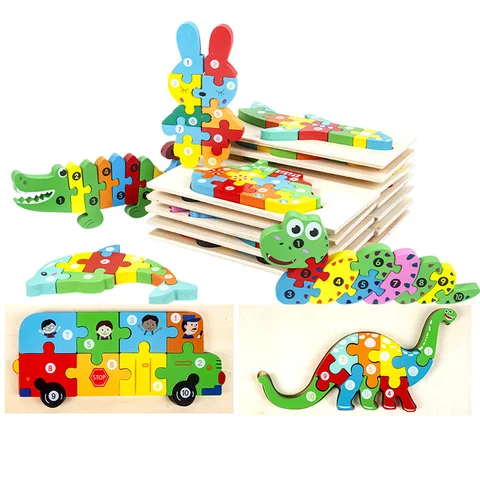 Baby Toys Wooden 3D Puzzle Toy For Children Kids Cartoon Animal Puzzles Intelligence Jigsaw Puzzle Toys For Children Educational
