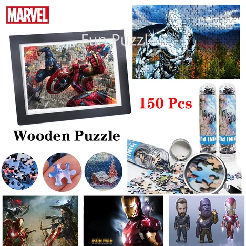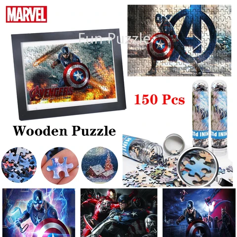 Disney Marvel Cartoon 150Pcs Creative DIY Mini Wooden Puzzle Captain America Model Assembled Jigsaw Puzzle Toys For Kids Gifts