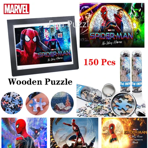 Disney Marvel Cartoon 150Pcs Creative DIY Mini Wooden Puzzle Spider-Man Model Assembled Jigsaw Puzzle Toys For Kids Gifts