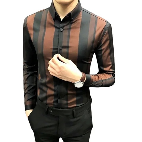 Striped shirt men's long-sleeved Korean version of the trend of men's casual slim business shirt handsome shirt men