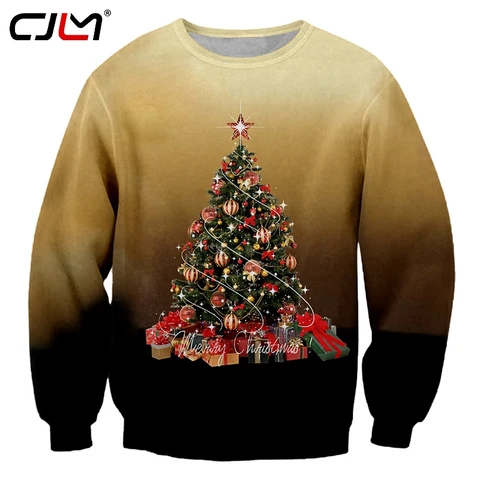 CJLM Man New Style Personality Colored Trend Pullover 3D Printed Christmas Tree Large Size Men's Casual Sports Sweatsgirt