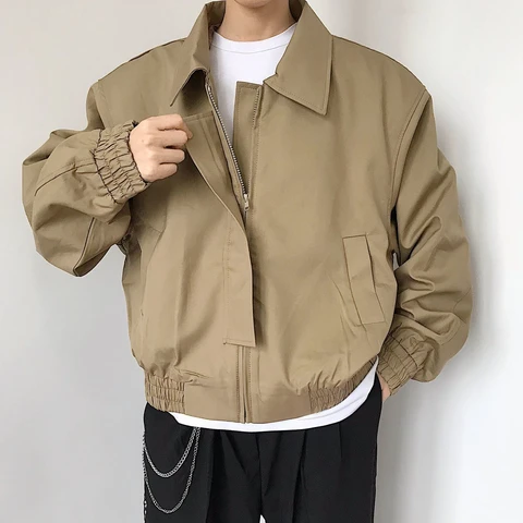 Autumn and Winter New Short Jacket Men's Fashion Square Collar Solid Color Loose Casual Zipper Bomber Jacket Streetwear