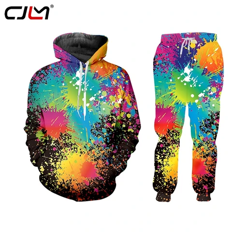 CJLM Men/woman set two pieces fashion Colorful splash ink Clothing sports suit husband Harajuku casual style tracksuit winter
