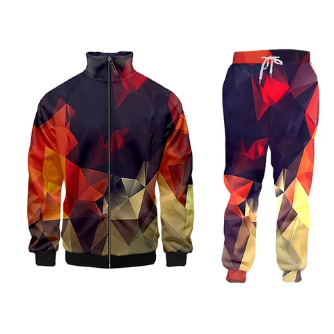 CJLM 3D Printing Colored Squares Zip Hoodie Set Men's Sweatshirt Jogger Jacket Harajuku Two Piece Tracksuit Sportswear