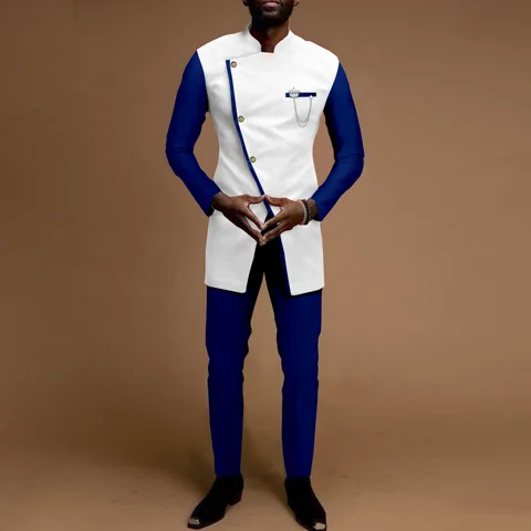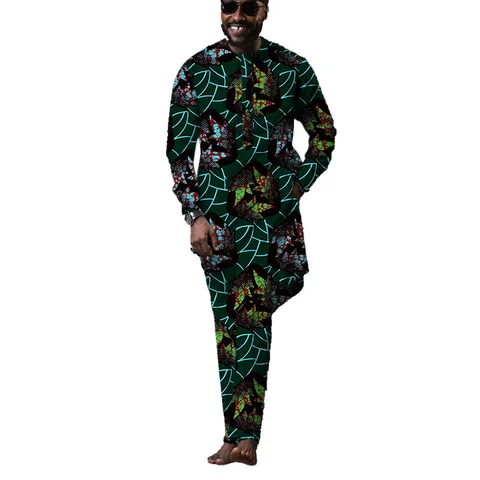 Nigerian Style Long Sleeves Men's Sets Modern Design Print Male Pant Suits African Fashion Wedding Party Wear