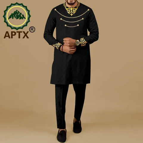 New Fashion African Men's Embroidered Shirt and Trousers 2-piece Set Festival Bazin Riche Wedding Evening Clothes A2216026