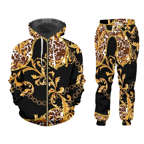IFPD Men's Tracksuit Baroque Style Jackets And Jogging Pants Set 3D Printed Golden Floral Luxury Women 2-Pieces Suits Streetwear