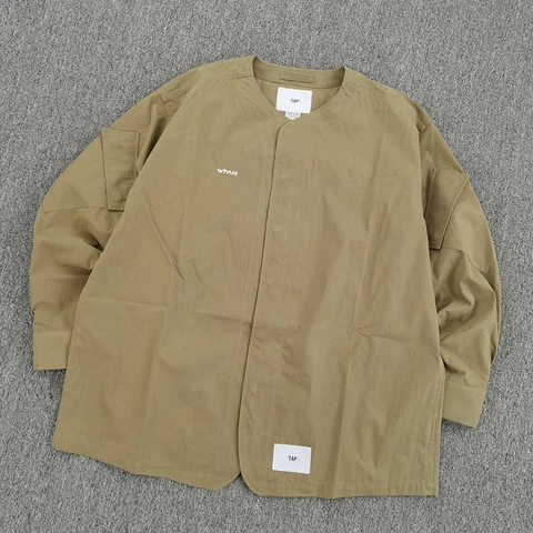 WTAPS 22SS Spring And Autumn Japanese Style Cityboy Collarless Loose Bone Embroidery Men's Casual Long Sleeve Shirt
