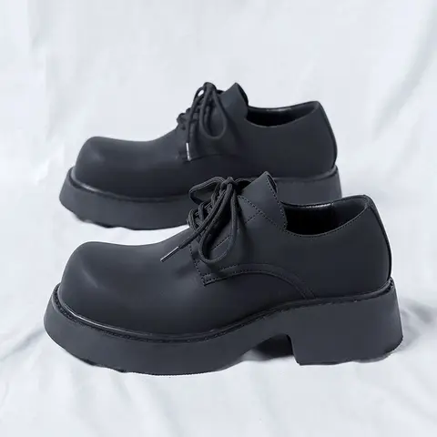New Men Solid Black Derby Shoes Casual Split Leather Oxfords Male Platform Dress Shoes Business Footwear Vintage Streetwear
