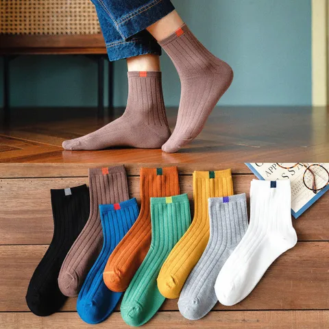 Dreamlikelin 4 Pairs/Lots Spring Summer Harajuku Man Color Block Socks Business Casual Sports Socks Set Cotton Breathable Socks