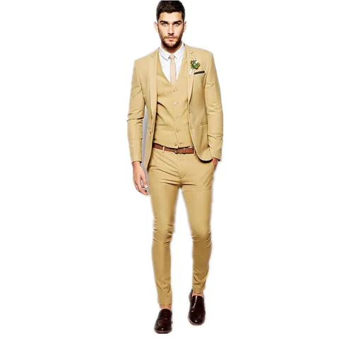 Golden Men Suit Slim Fit Tuxedos Custom Made New Fashion Formal Business Suit Men's suit custom size coat + pants + vest 3 Piece