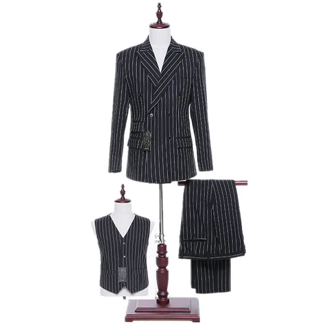 New 2019 mens suits wedding Black striped fabric slim fit double breasted groomsmen tuxedo mens formal wear classic suits CUSTOM