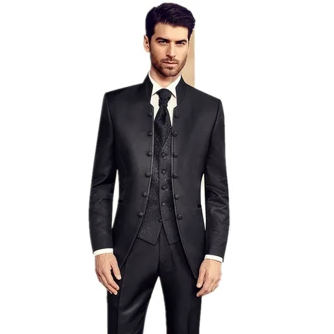 Fashion men suits Stand Collar Wedding Mens Suits Slim Fit Bridegroom Tuxedos For Men Suit Black Custom size