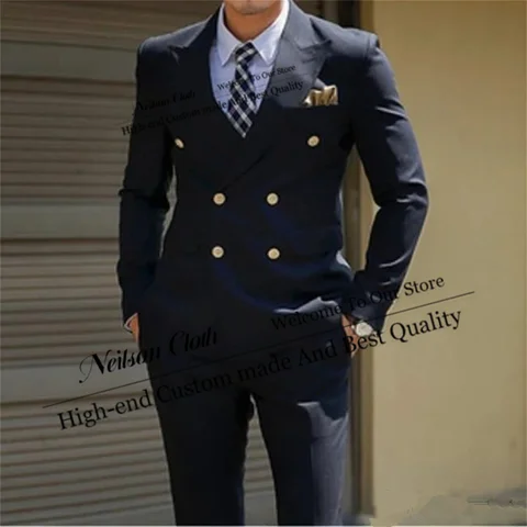 2023 New Black Men Suits Peaked Lapel Double Breasted Groom Wedding Tuxedos 2 Pieces Male Prom Blazers Slim Fit Costume Homme