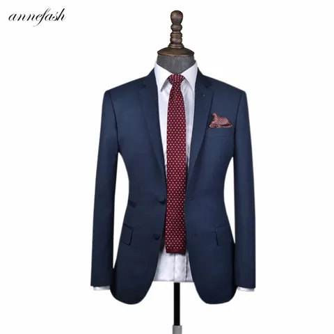 Free shipping New Slim Fit Men wool Blue navy Birdseye suit Custom made suit for wedding business Formal men suit (Jacket+ Pant)