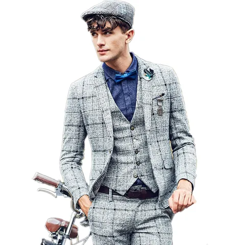 mens suits double breasted Leisure suit of Scotland case grain Suitable for autumn and winter suit, too(Coat + pants + vest)
