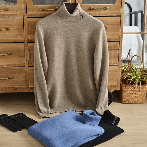 Men's Sweaters Stretchy Stylish Acrylic Fiber Loose Sweater Coat Winter Mens Turtleneck Pullover Sweater