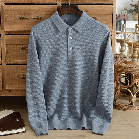 Long-sleeved t-shirt collar men's pure cashmere sweater lapel button loose bottoming sweater thickened business casual elderly