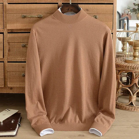 New Winter Men's Mock Neck Sweater Fashion Solid Color Warm Knitted Pullovers Men Casual Elastic Sweaters Male Autumn Knitwear