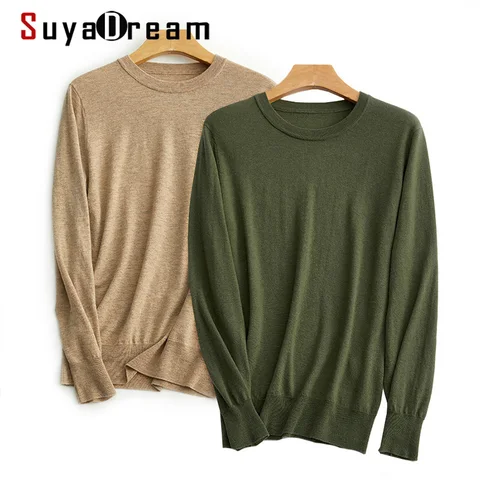 SuyaDream Mens Sweaters 2021 Winter 100%Wool O Neck Pullovers 2021 Fall Winter Plain Basic Top for Man