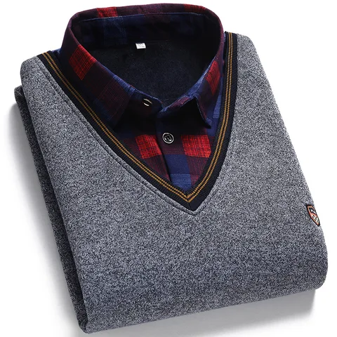 New Style Men's Fake Two Lapel Sweaters Middle Aged and Elderly Warm Knitwear Man Clothes