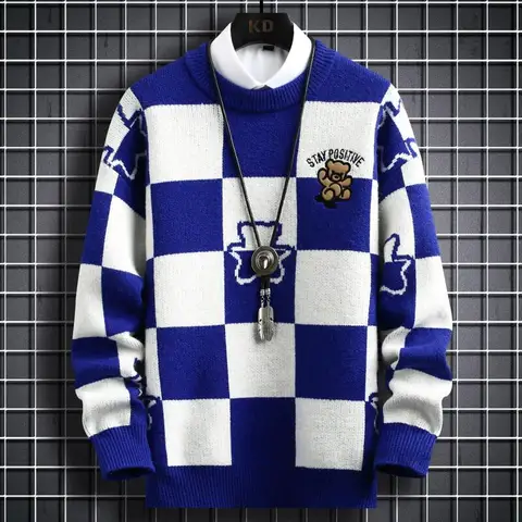 2022 New Winter Hip Hop Printed Loose Mens Sweaters High End Cashmere Sweater Men Clothing Fashion Plaid Christmas Pullovers