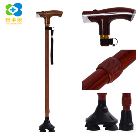 ANXIAOKANG Safe Reliable Old Man Crutches High-grade Light Wood Grain T Walking Stick Four-legged Cane Non-slip Elderly Supplies