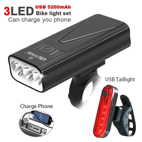 L2/T6 Bicycle Light USB Rechargeable Bike Lights 5200mAh Power Bank Cycling Mtb Lamp Headlight Flashlight Optional Taillight