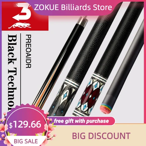 PREOAIDR 3142 Billiard Pool Cue Stick Black Technology Shaft Uni-loc Joint 10.5/11.8/ 12.75mm Rainbow Tip Professional Cue Stick