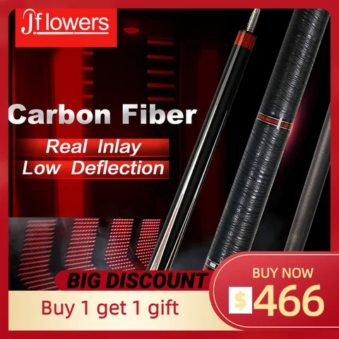 Jflowers Billiard Carbon Fiber Pool Cue Stick 12.5mm Tip Real Inlay Cue Technology Inlay Low Deflection Billiards Cue Kit