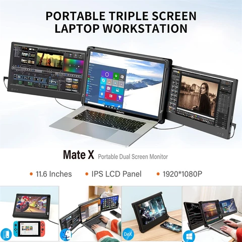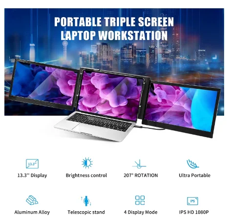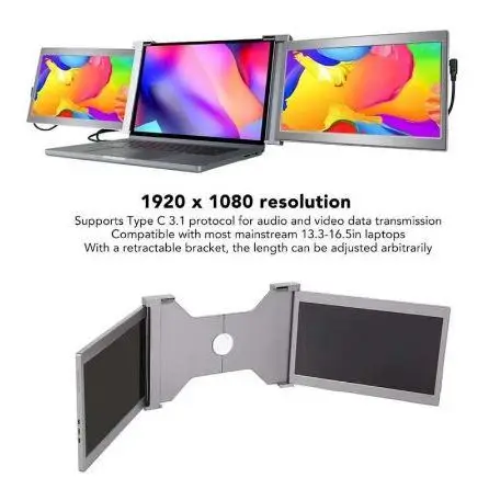 Triple Portable Monitor 12 Inch Laptop Screen Extender Dsipaly for 13-16" FHD 1080P Foldable Dual IPS Display For Switch