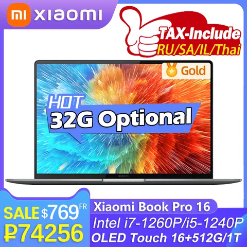 Xiaomi Book Pro 16 2022 Laptop Intel i7-1260P/i5-1240P RTX 2050 16GB RAM 512G/1TB SSD 16Inch 4K OLED Touch Screen Mi Notebook PC