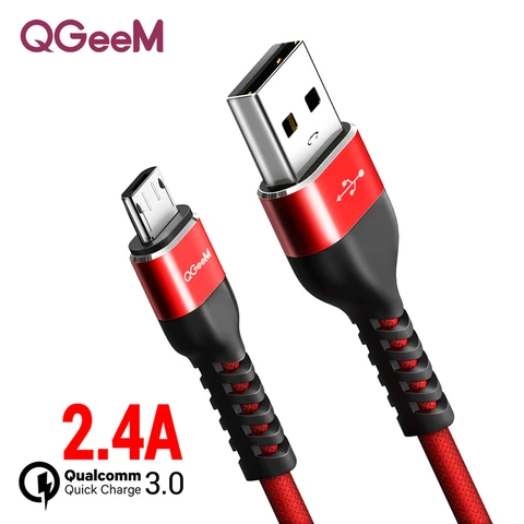 QGeeM Micro USB Cable 2.4A Nylon Fast Charge USB Data Cable for Samsung Xiaomi LG Tablet Android Mobile Phone USB Charging Cable